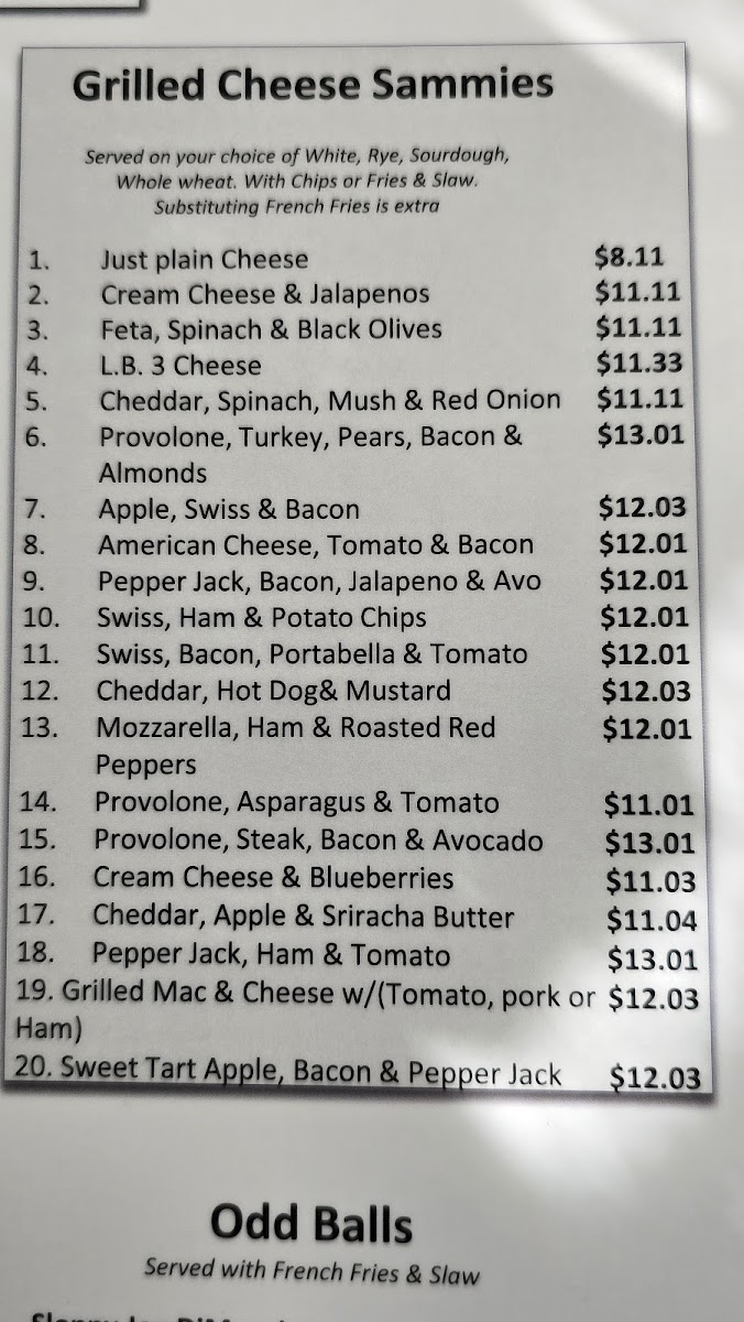 1/2 chicken salad, tuna salad, or egg salad, cup of soup & slaw. No fries.